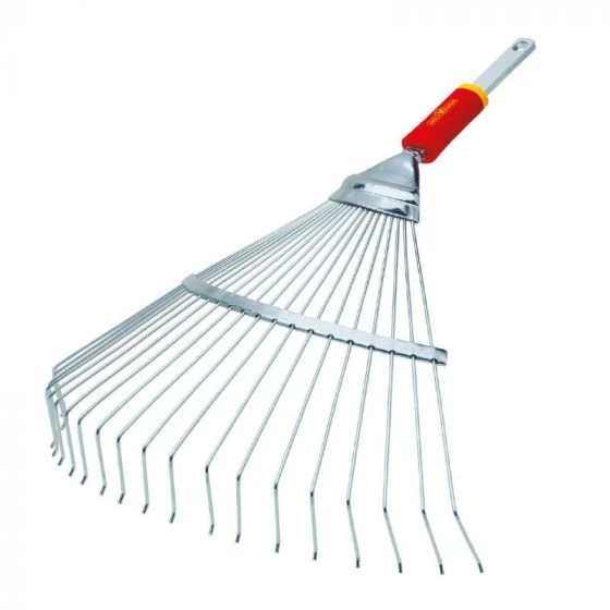 Unique curved fan shape cleans and collects grass from large areas.